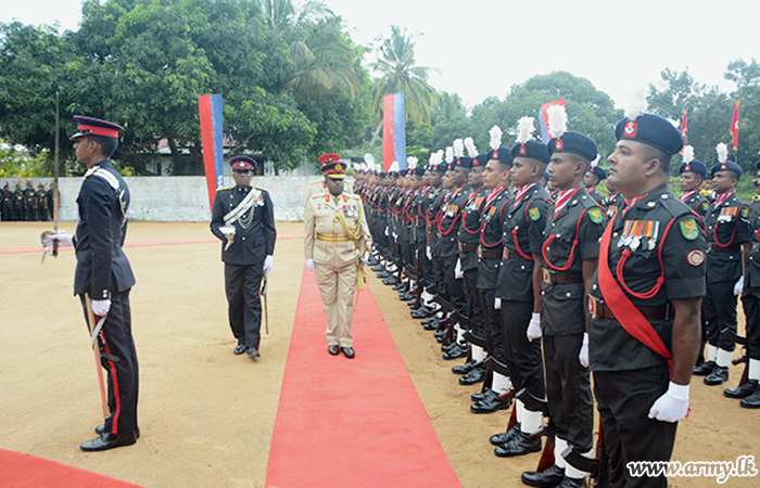 At the entrance, 14 (V) Sri Lanka Light Infantry troops presented a Guard Turnout and saluted him in accordance with military traditions after Brigade Commanders and Staff Officers at the Division HQ greeted the incoming GOC.