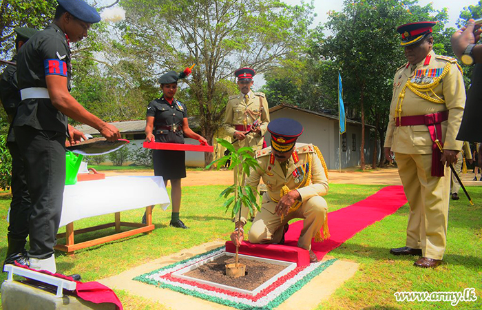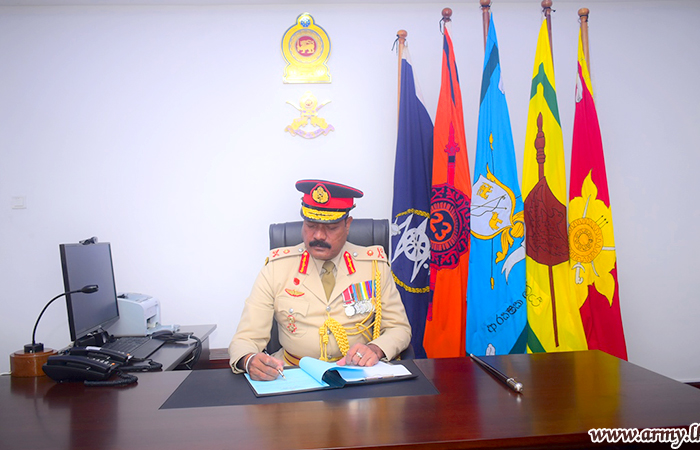 As members of the Maha Sangha commenced chanting ‘Seth Pirith’ invoking blessings on his new appointment, Major General Sujeewa Hettiarachchi placed his signature for an official document, signifying the acceptance of his new office. Giving symbolic importance to the day, the new Commander afterwards was invited to plant a sapling in the camp premises.