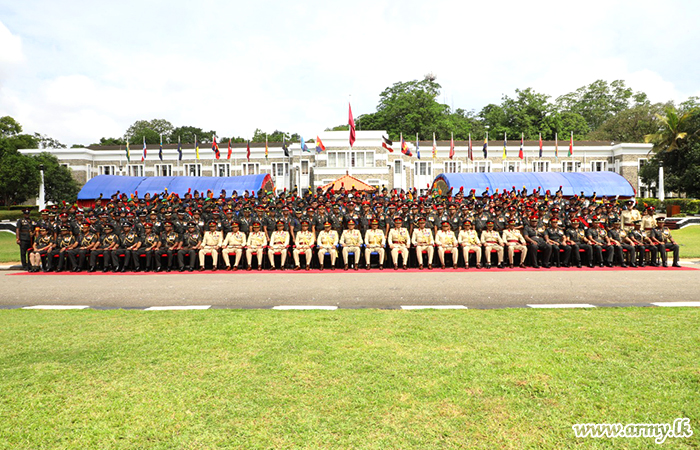 Soon after military honours were presented by troops of the Sri Lanka Army Corps of Engineers, the 13th Commander of the SFHQ-West was warmly received by Brigadier Asela Amarasekara, Brigadier Administration and Quartering and Brigadier Nilantha Premaratne, Brigadier General Staff at the entrance to the SFHQ-West.