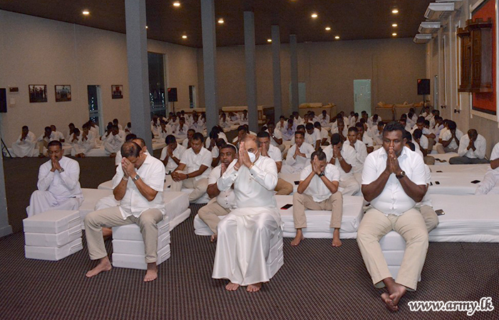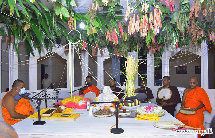 An all-night 'Pirith' chanting, the offer of alms and religious observances took the pride of place at the 'Home of Sappers’ in Mattegoda on 16-17 November 2022. A colourful procession, rich with traditional dancers and drummers, together with the sacred relic casket (Karanduwa) along with the book of old scriptures, (Pirivana Potha) conducted the members of the Maha Sangha to the octagon (Pirith Mandapaya) before they began chanting in order to invoke blessings to the Engineer Division, all wounded war heroes, serving ones and transfer merits to fallen ones.