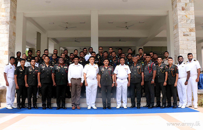 A batch of Student Officers at the Army School of Logistics (ASL) in Trincomalee following the Logistics Staff Course No-08 along with members of the Directing Staff, led by the ASL Commandant undertook a familiarization visit to the Naval and Maritime Academy, Trincomalee on 05 November 2022.