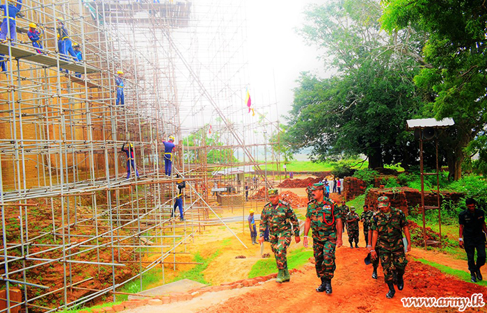 After the visit to the 24 Infantry Division, Major General Sujeewa Hettiarachchi visited Buddangala Rajamaha Viharaya. Subsequently, he undertook visits to Deegawapiya Rajamaha Viharaya to see the construction work in progress.