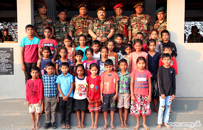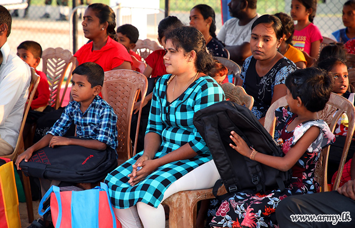 The Security Force Headquarters - Jaffna (SFHQ-J) further broadening its scope on community service projects once again extended its helping hand on Sunday (20) and gave away school accessories and dry ration packs to 30 needy students at Palaly North Government’s Tamil Mixed School with sponsorship received from South-based donors.