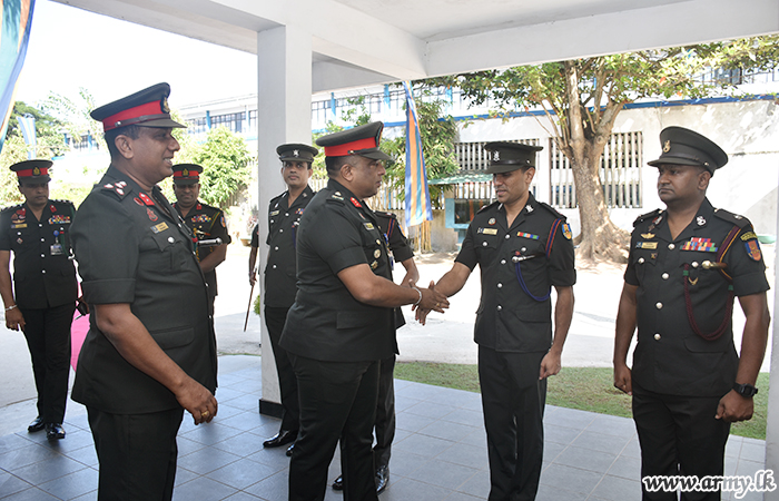 Brigadier R.B. Benjamin, Director, Directorate of Army Band and Performing Arts extended a warm welcome to the day’s visitor Major General Chandana Wickramasinghe on arrival at camp premises.
