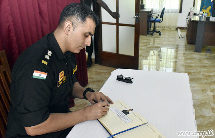 Lieutenant Colonel Puneer Sushil, Assistant Defence Advisor (DA) of the Indian Consul General Branch at Hambantota made a courtesy visit to the 61 Infantry Division, located at Boossa on Monday (Nov 21).