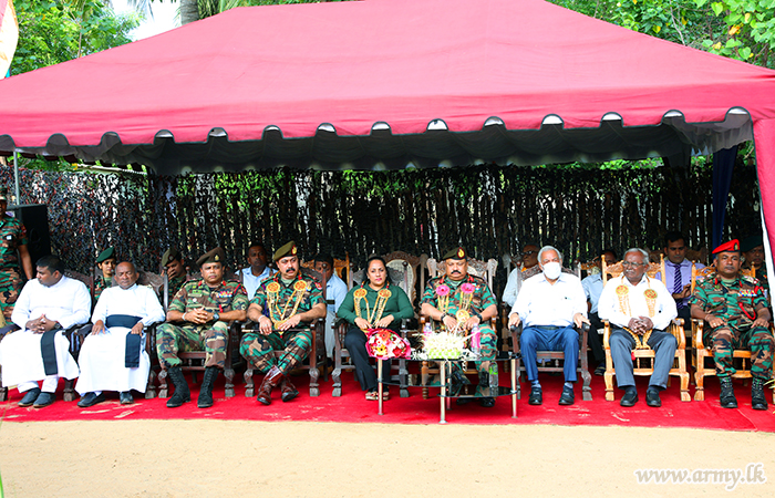 The beneficiary, Mrs Jayapuran Nandani, a widow with children received the keys from the day’s Chief Guest after simple Hindu religious rites were performed during the warming ceremony, attended by Mr Joshep Iruthayarajah, Mayor of Point Pedro, Mr Charles Ariyakumar, Chairman, Point Pedro Pradeshiya Sabha, Mr Alvaipillai Siri, Divisional Secretary for Point Pedro, state officials, relatives of the beneficiary, Officers and Other Ranks who contributed to the construction, together with the Commander Forward Maintenance Area (North), Brigadier General Staff of the Security Forces Headquarters -Jaffna and several others.