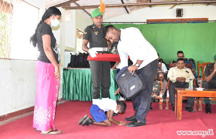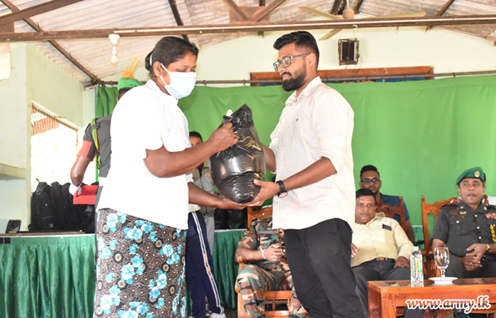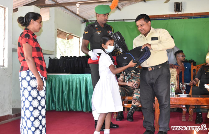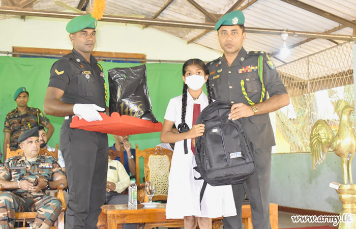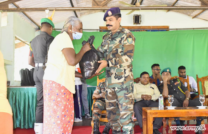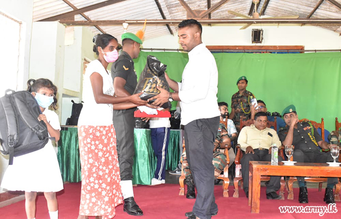 A group of donors, appreciative of the Army's determined efforts to raise the living and educational standards of the people and students in areas, served by 622 Infantry Brigade troops of the 62 Infantry Division in the Wanni region, launched a project to distribute dry rations and school accessories to 100 families after inviting them to the Ehetugaswewa Maha Vidyalaya on Friday (25).
