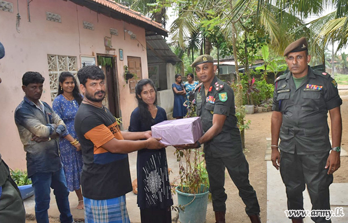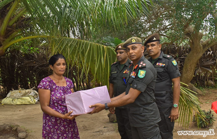 Generous troops of the 12 (v) Sri Lanka Artillery on being informed of her miserable plight got together and raised their own money for construction of her kitchen unit using their technical knowhow and manpower.