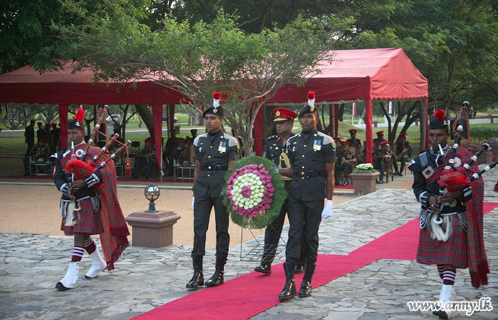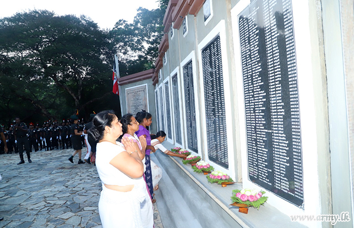 The memory of 28 Officers and 415 Other Ranks of the Sri Lanka Armoured Corps (SLAC) who made the supreme sacrifice during the Humanitarian Operations before May 2009 was refreshed paying floral tributes to them at the SLAC War Heroes' monument at Kalattewa SLAC Camp on Sunday (27).