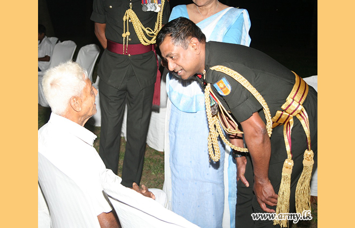 Later on, the day’s Chief Guest, flanked by several Senior Officers and family members of fallen War Heroes made their way to the monument and saluted their memory by placing floral wreaths. The SLAC Colonel Commandant took time off to share a few views with those family members present at the location.