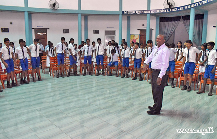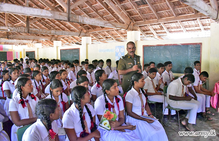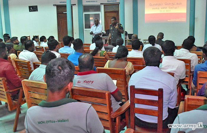Under the guidance and instructions of Major General Prasad Edirisinghe, General Officer Commanding of the 65 Infantry Division, the series of awareness programmes were conducted by Dr. Dushanthan, representatives of the MOH Office at Punakareen, Dr. Jegarooban, District Mental Health Officer, Mullaitivu, Dr. Dulanraja and MOH Office Representatives Mallavi and Manthai-East.