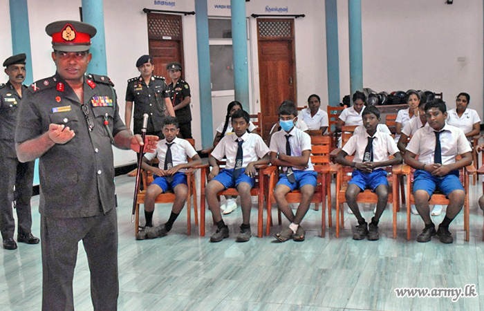 School students learning at Mulankavil Central College and Mallavi Central College with the objective of preventing young ones from the use of narcotics and educating them on dangers, associated with such use, the 65 Infantry Division HQ initiated a series of educational projects in the most recent past.