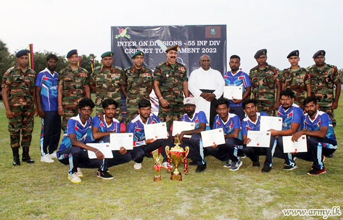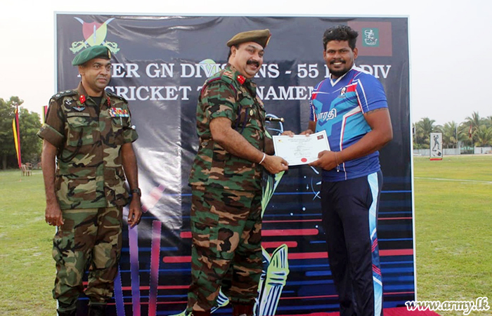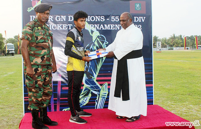The Army band and dancing troupes provided music and entertainment as the cricket match was in progress and Major General Prasanna Gunaratne, General Officer Commanding 55 Infantry Division as the Chief Guest gave away trophies and certificates to the winners at the end of the tournament.