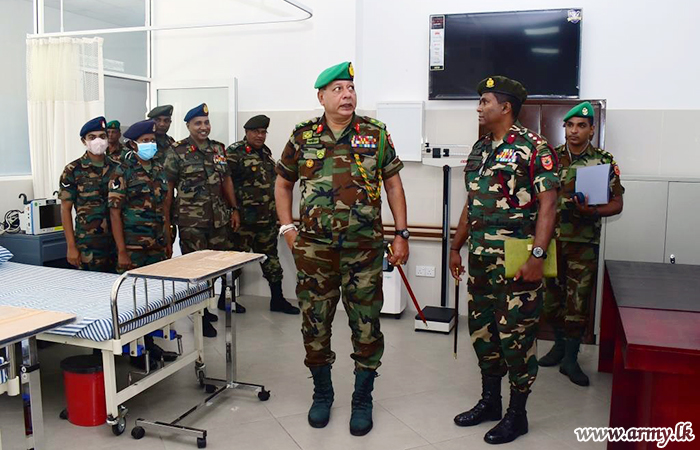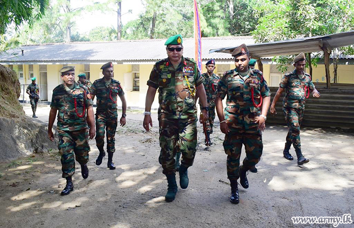 Prior to his arrival at the 11 Infantry Division, the new Central Commander visited the construction site of the new Army Base Hospital at Pallekele and closely watched its final touches, together with the 11 Infantry Division’s General Officer Commanding and several Senior Officers. After a while, he called at the 5 (V) Sri Lanka Light Infantry (SLLI) Regiment camp, situated in Pallekele and met troops serving there. The Commanding Officer 5 (V) SLLI received the visiting Central Commander.