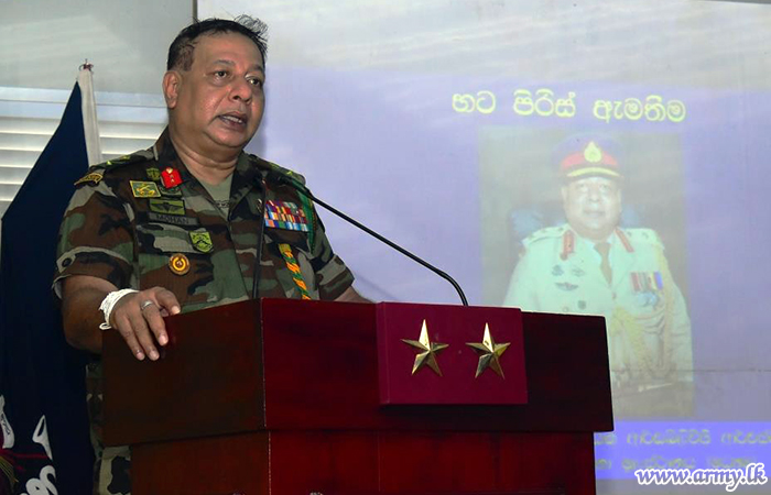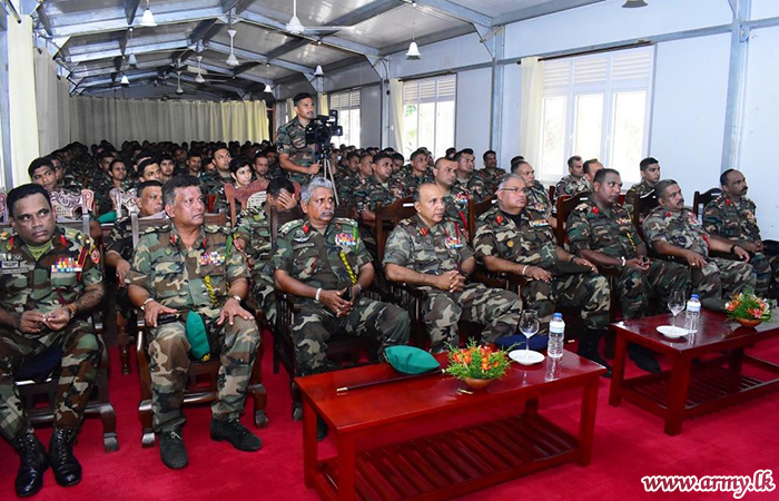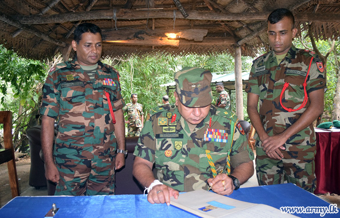Major General Kalpa Sanjeewa at first made a presentation of his Division’s role and tasks and responsibilities to the visiting Central Commander. As a formality, he addressed the troops and set out his vision for the troops in future. Before his exit from the 11 Infantry Division HQ, he left memories by posing for group photos and leaving compliments in the Visitor’s Book.