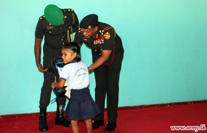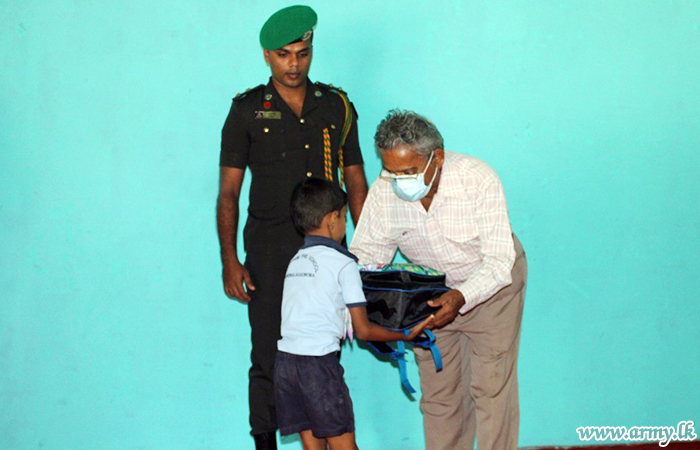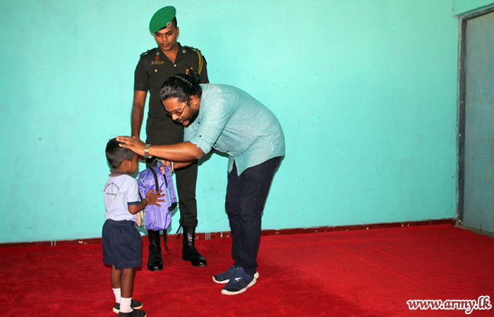 An initiative of the 143 Infantry Brigade HQ of the 14 Infantry Division of the Security Force Headquarters-West received the patronage of a philanthropist for donation of school accessories, gifts and essentials to children learning at Buddhinee Early Childhood Development Center at Thabbowa fishermen’s hamlet on Saturday (03).