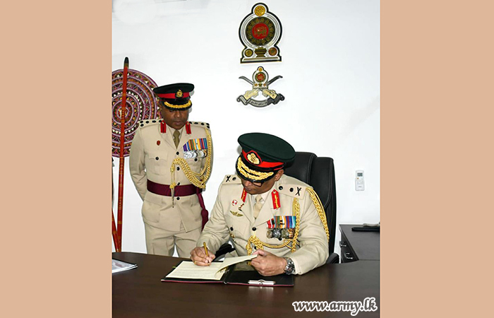Brigadier Chaminda Thibbotuge, Center Commandant, SLAWC welcomed Major General Darshana Wijesekara on his arrival at the camp premises and invited him to take the Guard of Honour in accordance with military traditions. Later, he placed his signature symbolically for an official document amidst religious blessings and marked the acceptance of his new responsibilities.