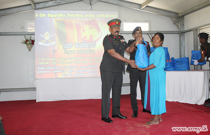 The anniversary commemorative events included an alms-giving to members of the Maha Sangha on 01 December in memory of fallen War Heroes. Similarly, a free dry ration distribution programme for 25 needy families in the area also took place where Brigadier Shihan Fernando, Commander, 542 Infantry Brigade attended as the Chief Guest.
