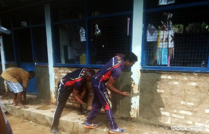 Meanwhile, 3 (V) GW troops fully plastered a building at Walakanda Central College at Puhulwella which remained abandoned due to lack of financial resources, labour and materials. Troops after full completion of the plastering the building formally informed the school authorities on Wednesday (Dec 07).