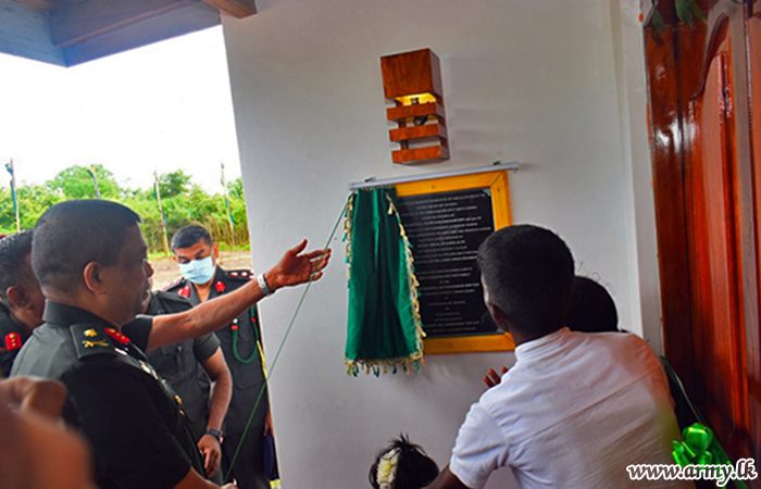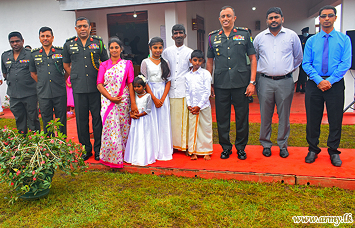 The Security Force HQ-Wanni (SFHQ-W), prepared to help deserving communities at all levels succeeded in erecting one more new house for a needy family in Rasendrakulam area in Vavuniya with generosity, extended by a collective of local and overseas-based 12 philanthropists who placed the full confidence in the Army capacity and expertise for such work.
