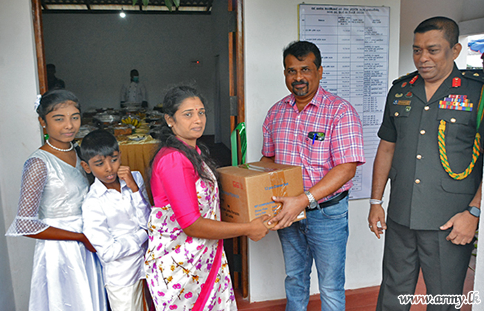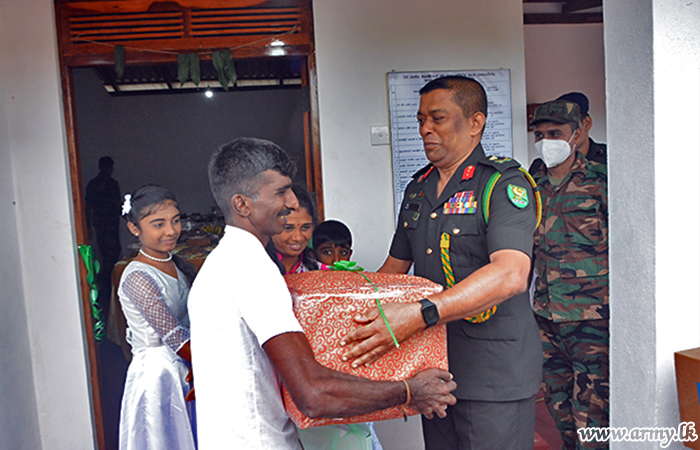 On Friday (Dec 9), Major General Champaka Ranasinghe as the Chief Guest during a simple ceremony, together with District Secretary for Vavuniya Mr P. A Sarathchandra, several representative donors, Divisional Secretary for Vavuniya, Mr N. Kamaladasan, General Officer Commanding 56 Infantry Division, Brigade Commanders of the 561, 562, and 563 Infantry Brigades, Commanding Officers, senior officers, relatives of the beneficiary, villagers and invitees attended the formal warming ceremony of the new house where the keys were handed over.