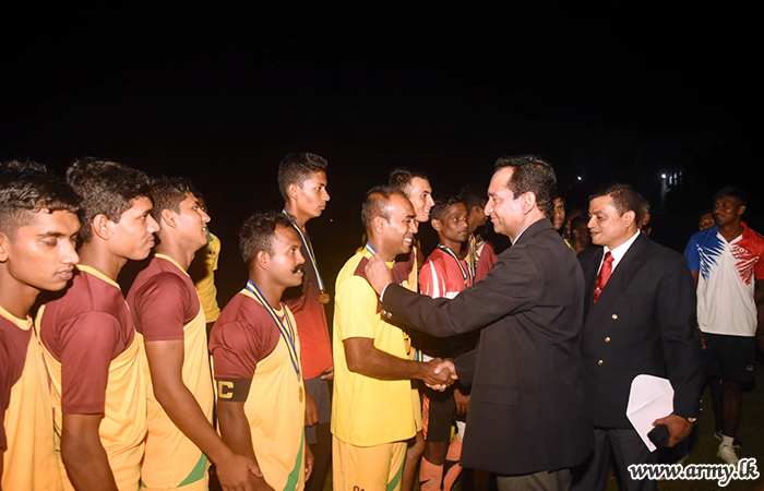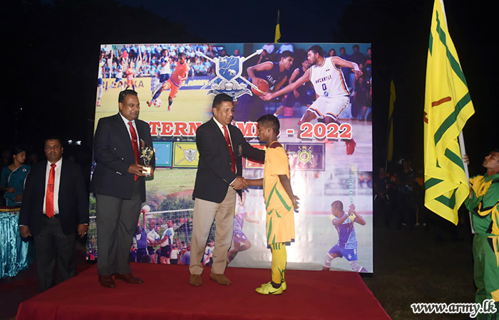 Major General Sujeewa Hettiarachchi, Commander SF-East, graced the finals as the chief guest and awarded certificates, medals and trophies to the winners. The tournament was organized under the directions of the General Officer Commanding (GOC), 22 Infantry Division, Major General Saliya Amunugama and Colonel Sujeewa Rathnayake, Commander 221 Infantry Brigade who coordinated the entire event.