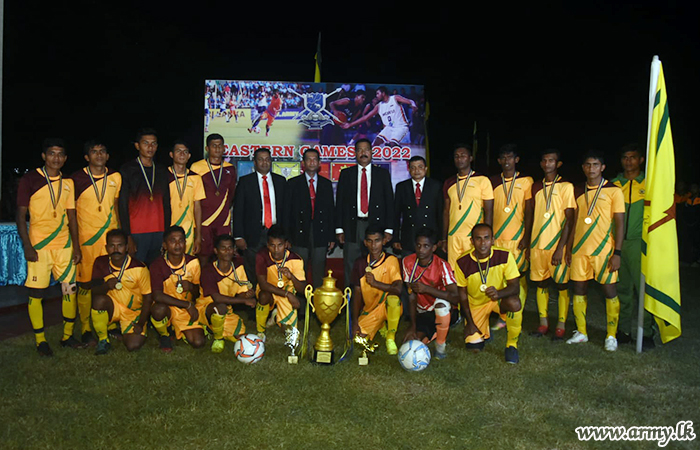 The enthusiastic team of football players in the 22 Division of the Security Force Headquarters-East (SFHQ-E) who competed in the Inter Division Football Finals 2022 of the SFHQ-E emerged victorious for the 4th consecutive time, defeating the 23 Division’s team for 1-0 during the finals at Ehamparam grounds in Trincomalee on Saturday (10).