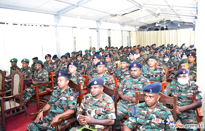A representative gathering of both Officers and Other Ranks serving the 11 Division HQ and under command Brigades and Battalions recently listened to a lecture, themed on ‘Diverse Impact of Media on the Army-Pluses & Minuses’, held at the 11 Division Headquarters at Pallekele.