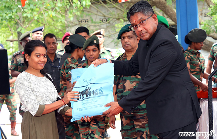 Major General Sanjeewa Fernando, General Officer Commanding, 52 Infantry Division on behalf of the SFHQ-Jaffna took part in the distribution of those relief packs among deserving people in the peninsula.