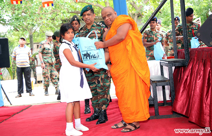 The Buddhist delegation with a consignment of dry rations, gift parcels and relief items for distribution among the poor upon arrival at Kankesanthurai made offerings to the Tissa Viharaya where SFHQ-J troops with sister services offered ‘Gilanpasa’ and alms to the monks and meals to the participants. Troops also supported the distribution of relief items and other donations brought by the visitors among 250 needy families in the Jaffna peninsula. In addition, troops assisted the distribution of 150 gift packs among pregnant women and 250 more stationery packs among deserving students. The visiting monks and devotees had sponsored the distribution in a move to strengthen the goodwill between Jaffna people and southerners on tour.