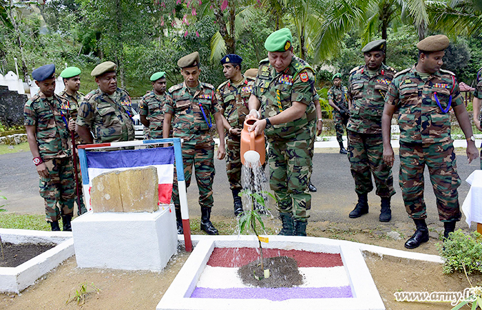 On the arrival Major W.G.T.W.A.M.R.P.S Boyagoda, Commanding Officer 3 (V) SLSR and Major A.A.E.P Bandarawatte, Commanding Officer, 19 SLNG warmly welcomed the Commander respectively at each unit and honoured him in formal Guard Turnouts, Planting of saplings, Troop address and an all rank lunch.