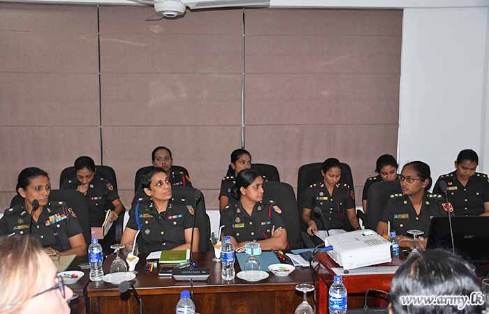 The cordial discussion, led by Brigadier Chaminda Thibbotuge, Center Commandant, Sri Lanka Army Women’s Corps and a representative group of lady Officers from the Sri Lanka Signal Corps, Military Intelligence Corps, Corps of Engineer Services, Sri Lanka Army Ordnance Corps, Sri Lanka Army General Service Corps and Sri Lanka Army Women’s Corps enabled both visitors and their host to receive a thorough understanding of the issues at local and international levels.