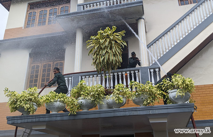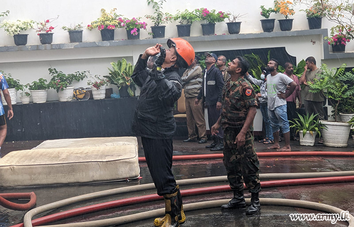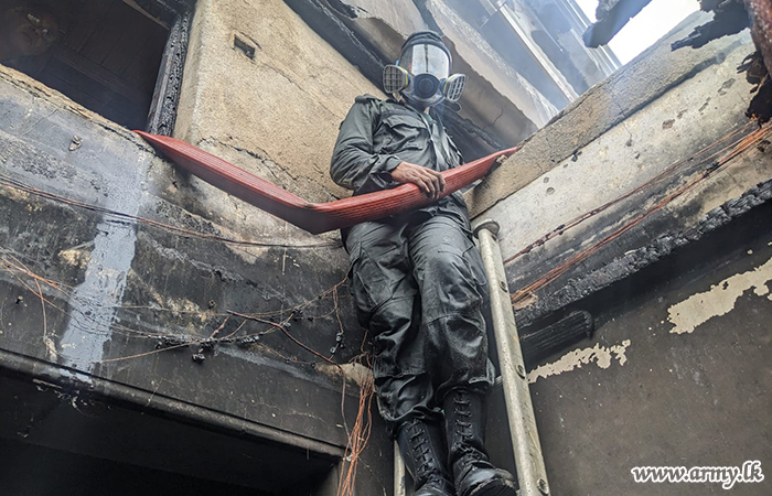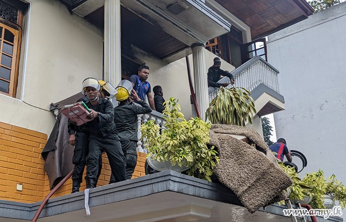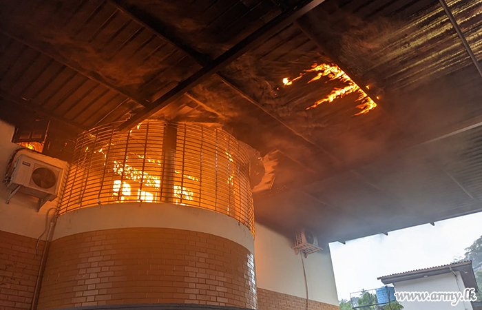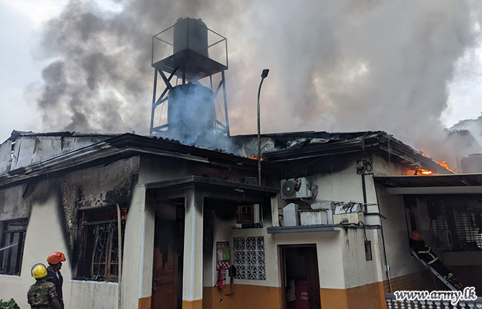 Army troops of the 111 Brigade of the 11 Division under command to the Security Force Headquarters - Central (SFHQ-C) took immediate steps to bring a spreading fire under control in a three-storied house along the Sri Sangaraja Mawatha in Kandy on Saturday (17).