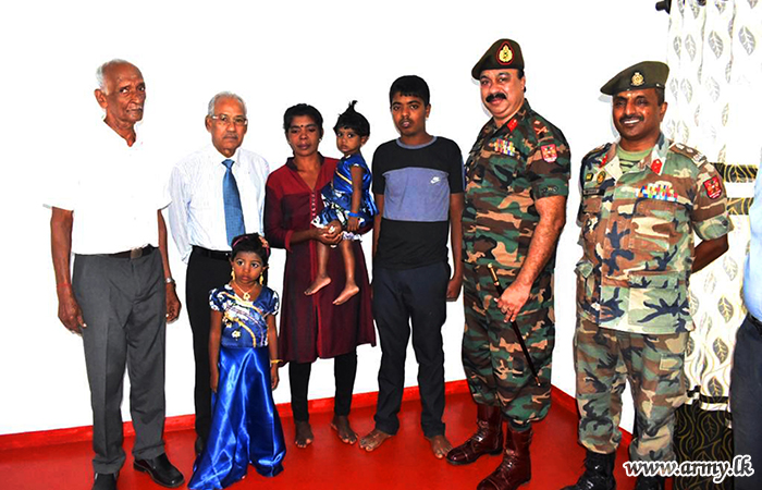 Manpower and technical expertise of the 55 Division troops of the Security Force HQ-Jaffna and the patronage extended by a donor enabled the 551 Infantry Brigade troops to build a new house for a deserving family in Thunnalai (South), Karaveddy and vest it with the beneficiaries in the presence of Major General Prasanna Gunaratne, General Officer Commanding, 55 Infantry Division as the Chief Guest on 16 December.