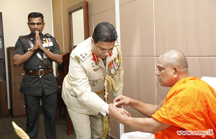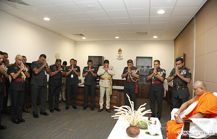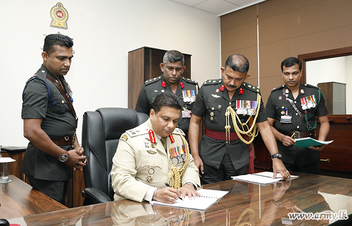 After arrival at his office, the newly-appointed Military Secretary left his signature in an official document, signifying the acceptance of his new office amid chanting of ‘Seth Pirith’ by members of the Maha Sangha.