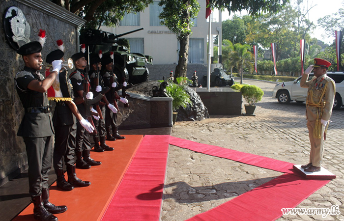 The protagonist was warmly welcomed by the Armoured Brigade Commander, Brigadier Priyantha Kariyawasam, and the Centre Commandant Brigadier Piyal Wijesiriwardena after he was saluted with a colourful Guard Turnout at the entrance. The Colonel Commandant later reviewed the glamorous anniversary parade before paying tribute to the memory of fallen War Heroes.
