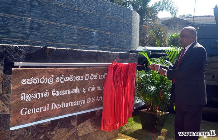 Adding more significance to the day, the signboard of the road, named in honour of late General Deshamanya D.S Attygalle was unveiled by Major R.U.D.S Senanayake (Rtd), the most senior SLAC Officer in the Corps after the veteran's life-size bust was unveiled by General (Retd) Jagath Jayasuriya, former Commander of the Army on the invitation of the Colonel Commandant SLAC.