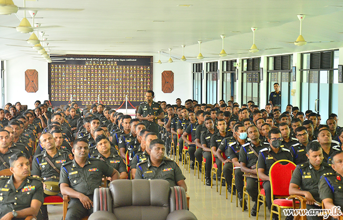 The Directorate of Psychological Operations with the aim of enhancing the knowledge of ‘Military literature’ among the troops conducted a series of lectures during the month of December at Battalion Training School in Katukeliyawa, Sri Lanka Signal Corps Regimental Headquarters, Sri Lanka Army Service Corps Training School in Tisawewa and at Mechanized Infantry Regiment Training School at Manik Farm.