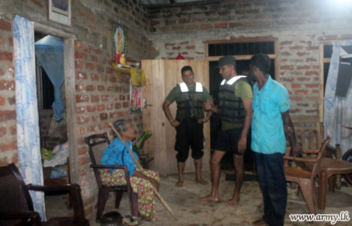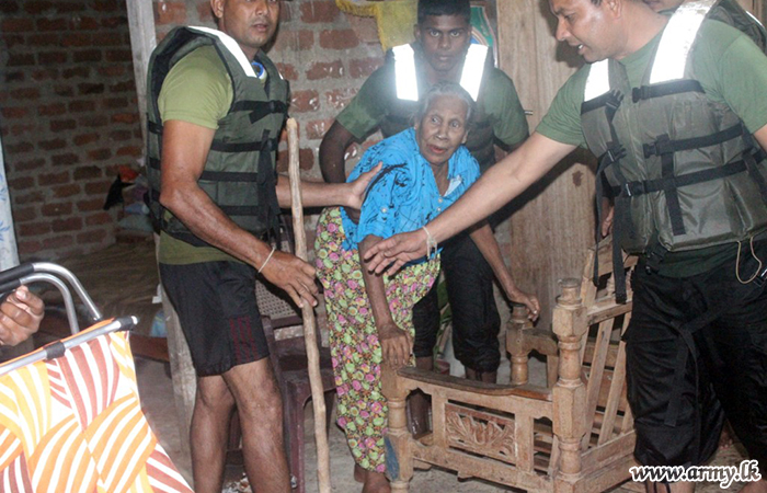 6 Vijayabahu Infantry Regiment (VIR) troops of the 583 Infantry Brigade of the 58 Infantry Division serving Kurunegala area promptly swept into action and rescued an elderly woman, trapped in the gushing flood water caused by torrential rains in the past 48 hours.