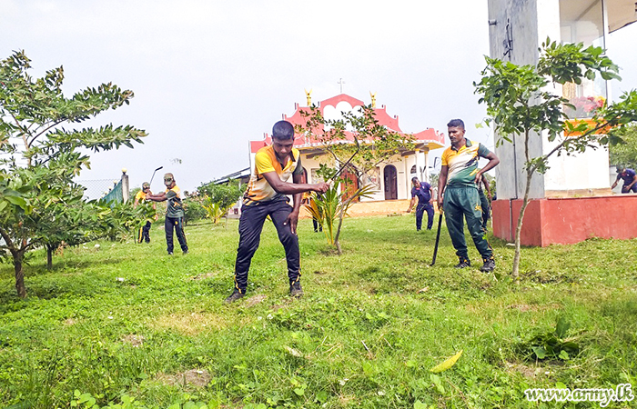 Moreover, 17 Sri Lanka Gajaba Regiment (17 (V) GR) conducted a similar cleaning programme in the Methodist Church compound at Thanduwan village under the guidance of Brigadier Medanka Alwis, Commander, 642 Infantry Brigade. Major A.H.M.S.C Abeysinghe, Commanding Officer (CO) of 17 (V) Gajaba Regiment closely supervised the programme.