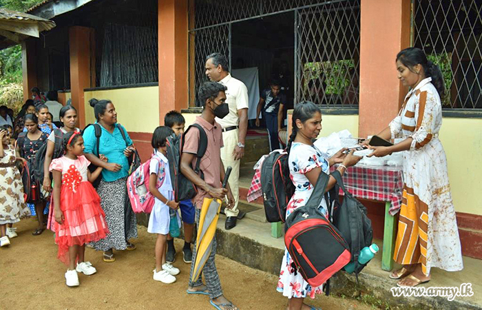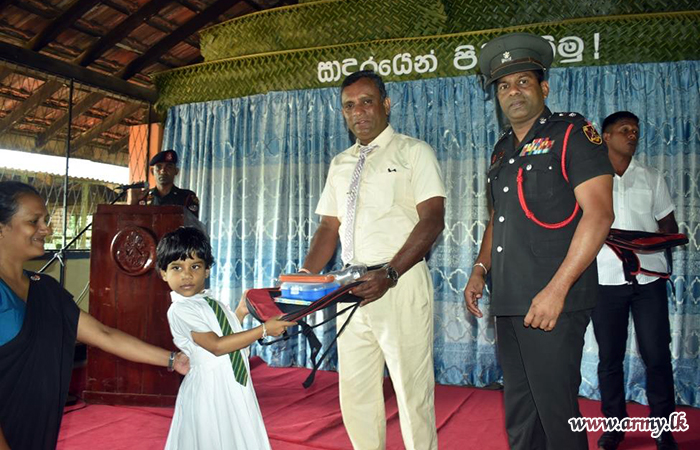 Each pack of school accessories and essentials was made up of Exercise Books, Pens, Pencils, Arithmetic Boxes, School bags, stationery to the value of Rs 2,50,000/-. The retired Army Officer, Major Roshan Siva and his spouse sponsored the donation at the request of the 141 Infantry Brigade since those students, though clever undergo hardships and are unable to buy school accessories.