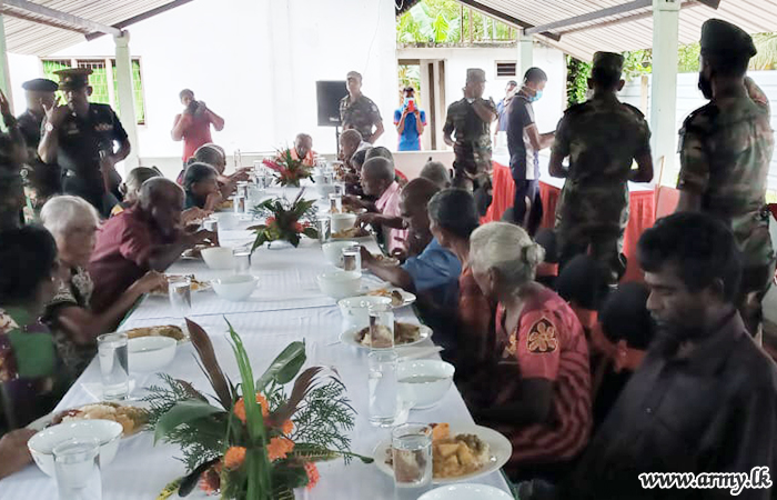 To coincide with the dawn of Christmas, 572 Infantry Brigade troops of the 57 Infantry Division under command to the Security Force Headquarters - Mullaittivu offered a delicious lunch to 25 inmates at Dharmapuram ‘Namawasi’ Elders' home on Christmas day (25 December).