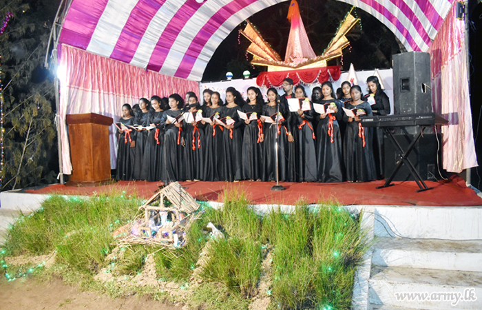 Brigadier Wasantha Bandara, Commander 651 Infantry Brigade joined the spectacle of Carol singing as the Chief Guest. The event was filled with a lot of colourful features of children. The music support was given by 17 (V) Sri Lanka Light Infantry Music band of the Army.