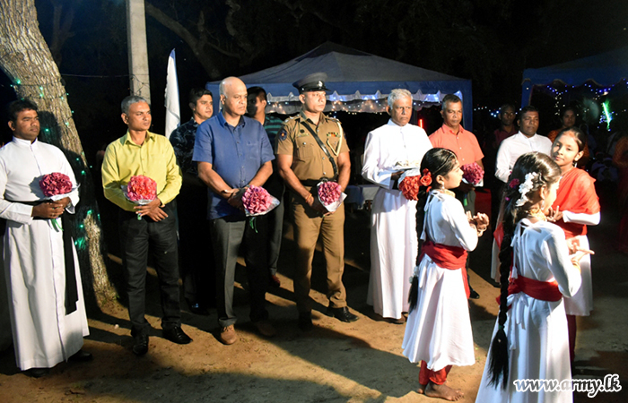 Meanwhile, the troops of the 661 Infantry Brigade gave away their fullest support to the success of the Pooneryn St. Mary’s Church Christmas Carols event. Troops of the 661 Infantry Brigade together with 22 Vijayabahu Infantry regiment troops cleaned up the Church premises, erected temporary huts for devotees attending X'mas masses and offered refreshments to devotees.