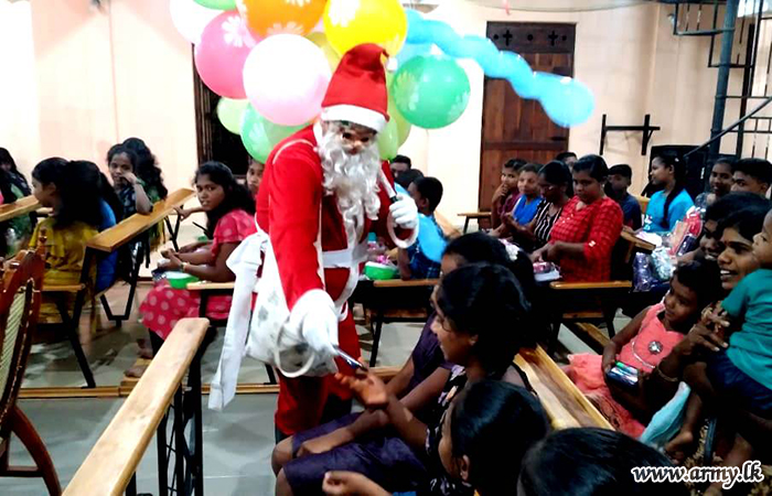 Likewise, troops of the 571 Infantry Brigade offered a delicious lunch to 33 resident children at Good Shepherd Convent on Christmas day and donated school accessories to those 33 children. Brigadier Chaminda Gamlath, Commander 571 Brigade gave necessary guidance to the success of the event.