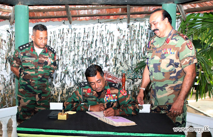 He first visited the 51 Infantry Division, then the 52 Infantry Division and the 55 Infantry Division HQ as the final segment of the itinerary where he was saluted in drive pass Guard Turnouts before respective General Officers Commanding (GOC) Major General Wajira Welagedara, GOC, 51 Infantry Division at Kopay, Major General Sanjeewa Fernando, GOC, 52 Infantry Division at Mirusuvil and Major General Prasanna Gunarathne, GOC, 55 Infantry Division at Kaddaikadu welcomed the visiting Jaffna Commander.