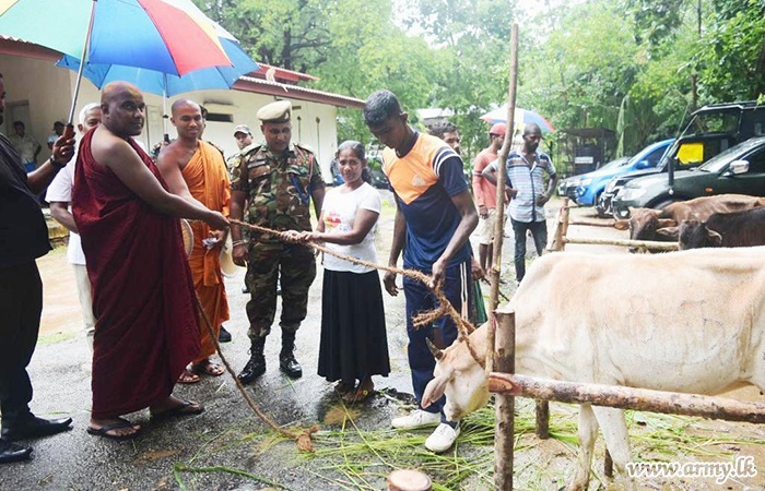 Accordingly, 50 dry ration packets were distributed among 50 low-income families, 50 nutrition packs with essential equipment given to 50 pregnant women and 14 cattle were given to 13 members in the farming community, resident in Uhana, Piyangala areas.