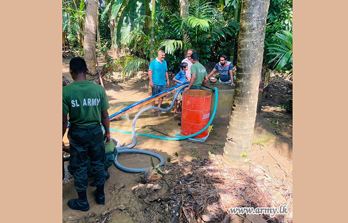 On being informed, Major General Deepal Pussella, Commander, Security Forces - West instructed the 14 Infantry Division to dispatch a contingent of troops to clean those polluted drinking water wells which remained contaminated after those wells were inundated with recent floods.