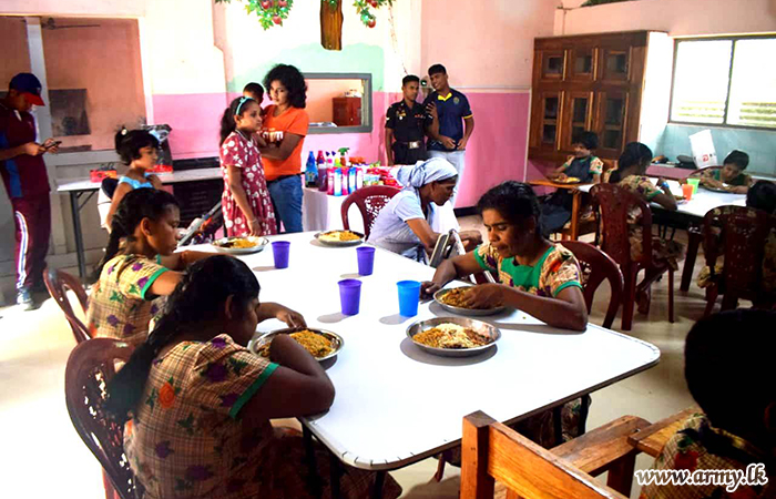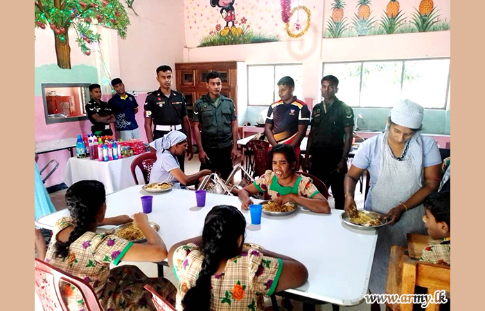 4 Gemunu Watch (GW) troops of the 231 Infantry Brigade under the 23 Infantry Division of the Security Force Headquarters-East (SFHQ-E) provided a delicious lunch and packs of essentials to 26 children at ‘Ozanam’ Centre for Children with Special Needs at Sathurkondan, Batticoloa on 26 December 2022 on account of the festive season.
