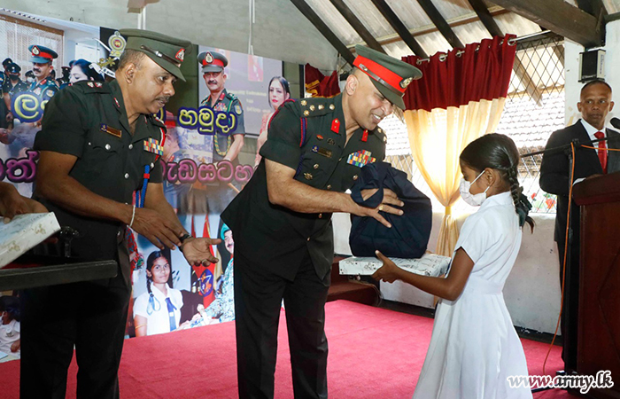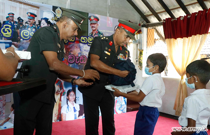 The patronage extended by Lieutenant General Vikum Liyanage, Commander of the Army enabled the Security Force Headquarters - West (SFHQ-West) to give away gift packs, each worth more than Rs 2000.00, inclusive of school equipment and essential items to 50 students studying at Pitipana Primary School in Homagama on Thursday (5) at the school premises.
